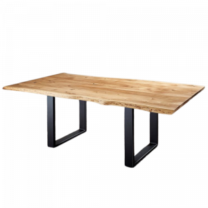 Ein echter Blickfang für Ihr Esszimmer: Unser Esstisch Meschede mit Schweizer Kante wirkt massiv und schlank zugleich! Die 4 cm starke, massive Eichenplatte wird in verschiedenen Ausführungen angeboten: Abgebildet sehen Sie die Bearbeitung mit „Rohholz-Effekt-Lack“. Die Eichenplatte wirkt natürlich und unbearbeitet. Die Astlöcher sind offen. Gern bieten wir auch eine schwarze Spachtelung oder Zinneinlagen an. Kontrastreich ist das Tischgestell in schwarz. Die Formgebung ist auch hier rund und harmoniert perfekt zur abgerundeten Tischplatte. Dieses Modell bieten wir auch in diesen Maßen an: 200 x 100 cm und 220 x 100 cm.