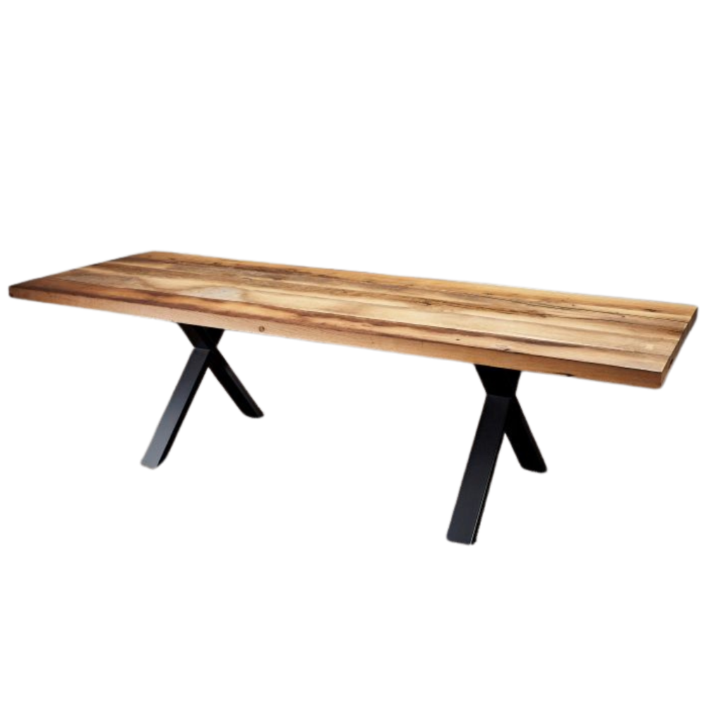 Das Modell MÖHNESEE steht für Esstische aus nachhaltigem Altholz! Unsere Altholz-Tischplatten werden individuell aus bis zu 200 Jahre alten Eichenbohlen gefertigt. Die Bohlen werden aus Fachwerk und Dachstühlen von alten Gehöften, Stallungen und Bauernhöfen in europäischen Bergregionen geborgen. Das Holz hat hier über Jahrzehnte der Witterung (Regen, Sonne und Wind) standgehalten. Hierdurch haben die Holzbohlen ihre einmalige Beschaffenheit und Struktur erhalten. Astlöcher, kleine Splintstreifen, Kernrisse, Holznägel und eine lebhafte Maserung bestimmen die Optik unserer Altholz-Tischplatten. Somit ist jeder Esstisch ist ein Unikat! Kleinere Altholzplatten mit einer Abmessung von 160 cm x 80 cm oder 180 cm x 90 cm und längere Varianten bis zu 320 cm x 100 cm sind lieferbar. Schwarze X-Beine tragen die Altholzplatte. Die X-Form ist optisch schön und ebenso äußerst praktisch: Die X-Tischbeine bieten maximale Bein- und Kniefreiheit!
