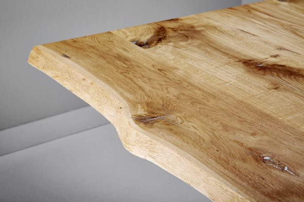 Wir präsentieren Ihnen eine schöne und große Auswahl an Baumkanten-Esstischen aus Eiche.