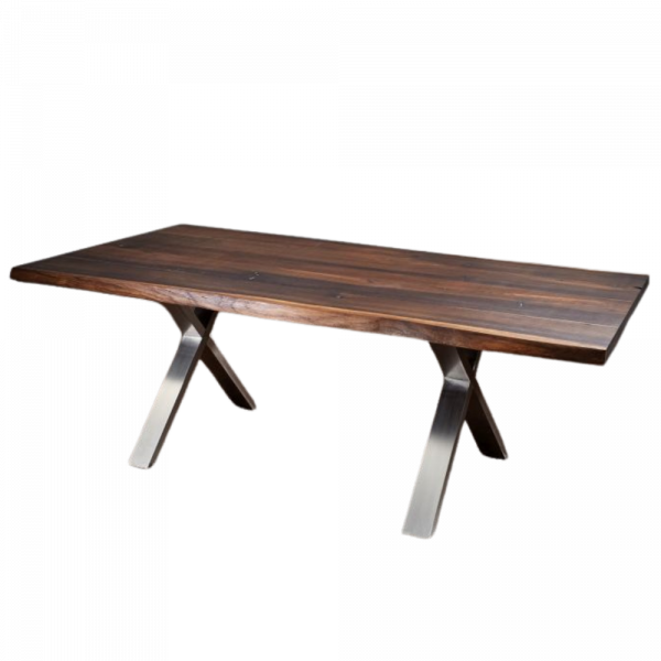 Esstisch "Schmallenberg" Der Esstisch aus Räuchereiche ist sehr beliebt! Er zeichnet sich durch seine natürliche Baumkante aus, die von ca. 98 cm bis 110 cm breit variiert. Die Platte ist 4 cm stark und wir fertigen ihn in verschiedenen Längen: Ab 200 cm bis zu 280 cm Länge sind möglich. Außerdem könnnen unsere Kundinnen und Kunden in unserer Tischlerei die Zusammensetzung der Holzbohlen wählen. Die Räuchereiche-Tischplatte mit Splintholz in der Mitte ist ein wundervolles, optisches Highlight! Der edle Esstisch hat X-Beine aus Edelstahl, die nicht nur optisch zeitlos und modern sind, sondern auch maximale Beinfreiheit schenken. Das X ist auch in schwarz und dunkelgrau lieferbar. Wir bieten Ihnen die Auswahl an verschiedensten Tischgestellen oder -beinen an. Die Astlöcher sind mit Zinneinlagen gefüllt – dies verleiht dem Ganzen den letzten Schliff und macht jeden Tisch zum außergewöhnlichen Einzelstück!