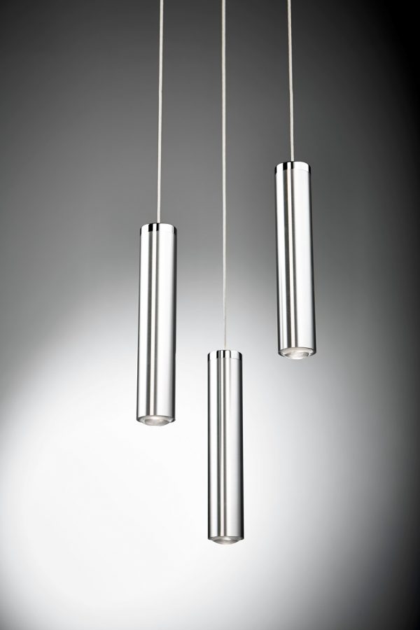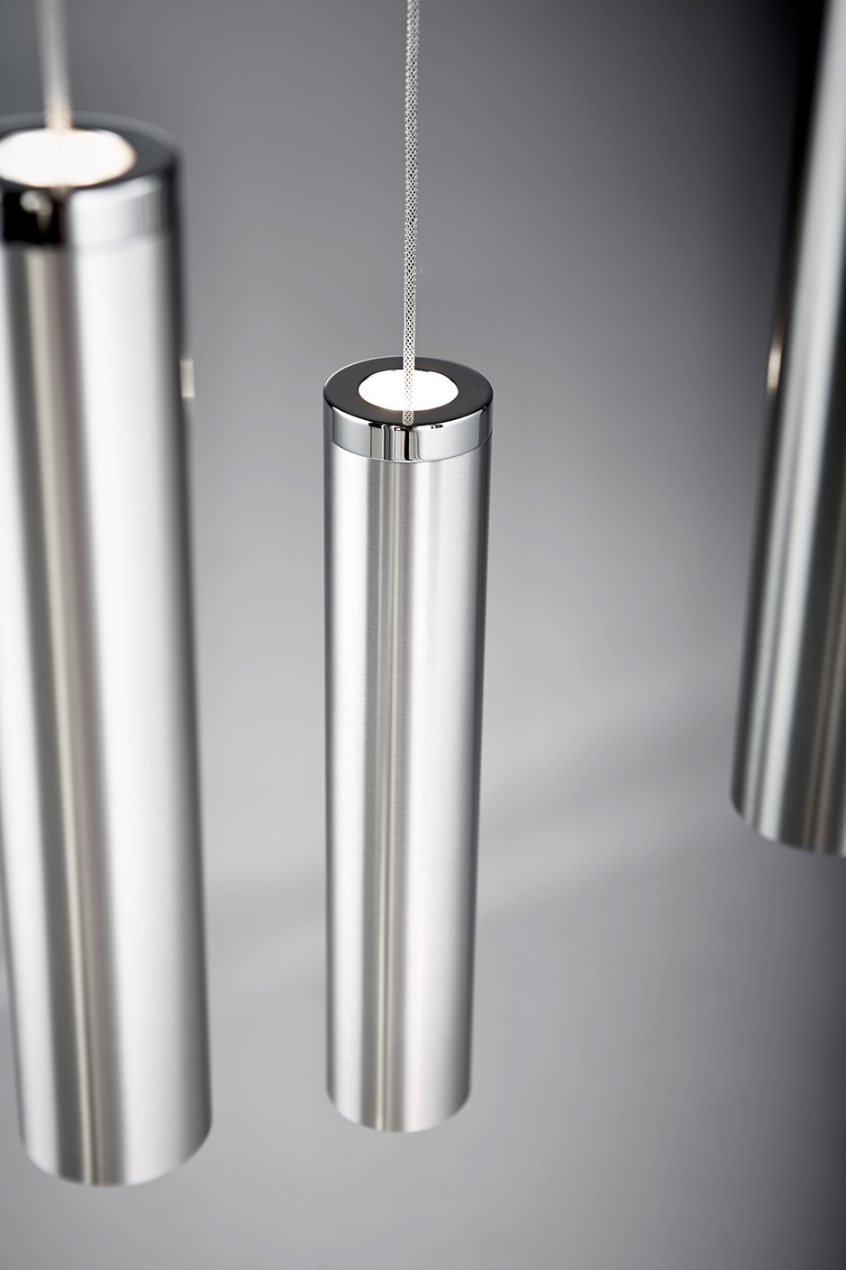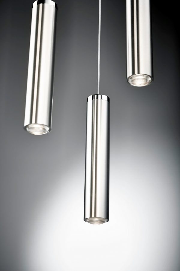 unsere LED-Pendelleuchte LINNEA mit 3 Pendeln. Die in den Pendeln eingearbeiteten Glas-Linsen leuchten Ihren