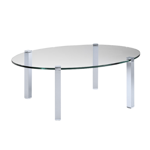 Couchtisch oval Glas Metall 4beinig Aluminium