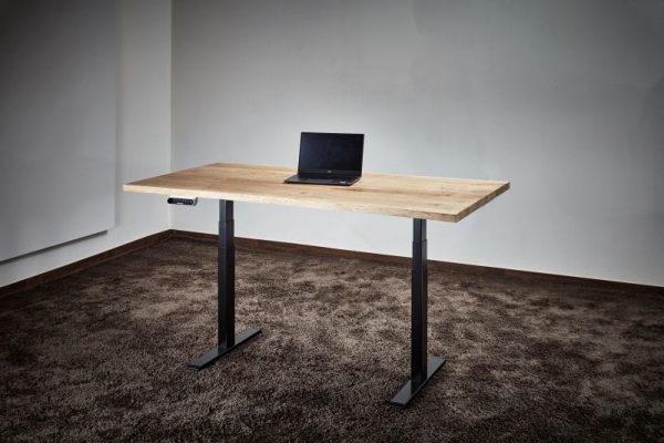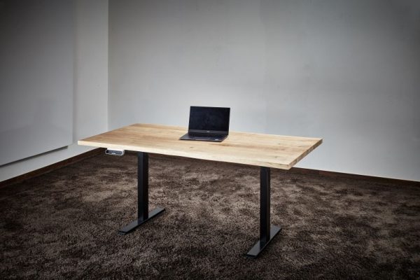 Äußerst praktisch und optimal für einen gesunden Rücken: Der Schreibtisch Plettenberg ist ideal geeignet für das homeoffice und bei Rückenproblemen wie z.B. Bandscheibenvorfällen. Machen Sie es sich einfach und bequem: Mit dem 3fach Teleskop kann der höhenverstellbare Schreibtisch von 60 cm Höhe bis zu 120 cm Höhe eingestellt werden. Somit können sowohl sehr große als auch kleine Personen sitzend und stehend alle Varianten ausschöpfen! Es gibt zudem eine praktische Memoryfunktion für die Höheneinstellung! Die Programmierung ist für 4 Personen einstellbar. In der Abbildung sehen Sie das Modell mit einer Tischplatte von 160 x 80 cm. Die Tischplatte ist aus massiver Eiche, 3 cm stark und hier im „Rohholz-Effekt“ gehalten. Das heißt, die Eichenplatte wurde mit einem Lack versehen, der die helle, natürliche Rohholz-Optik bewahrt. Die Tischplatte kann auch geölt angeboten werden. Dann wirkt das Eichenholz wärmer (honigfarben). Gern fertigen wir für Sie auch andere Maße, falls Sie z.B. eine größere Ablagefläche wünschen. Beispielsweise können wir einen höhenverstellbaren Schreibtisch auch in 200 cm Länge fertigen - ob mit natürlicher Baumkante oder schlicht und modern mit einer Schweizer Kante oder mit gerader Kante. Teilen Sie uns Ihre Wünsche und Vorstellungen mit - wir fertigen Ihren höhenverstellbaren Schreibtisch nach Maß, angepasst an Ihre Räumlichkeiten, Ihr homeoffice oder Ihre Büros.
